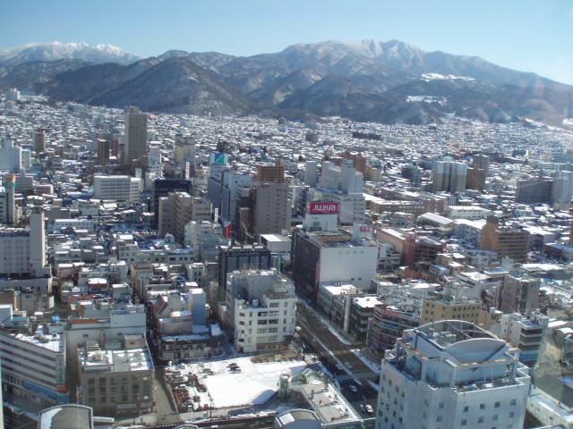 画像は最上階(27階)からの今日の山形市内の風景。天気良いがら、きれいだっけ。遠くの蔵王の山々もきれいでした。