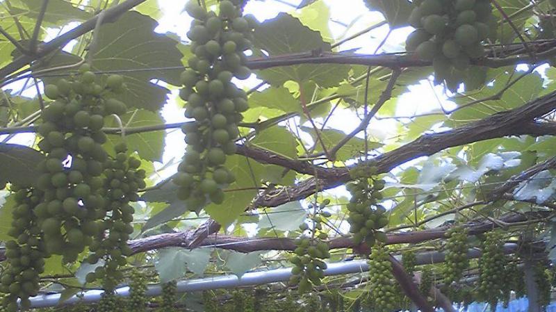 画像は今現在の、デラウェアー。実はまだ小さくて硬く青いですが、これからの暑さでもっと実も大きくなり、色付いてきます。