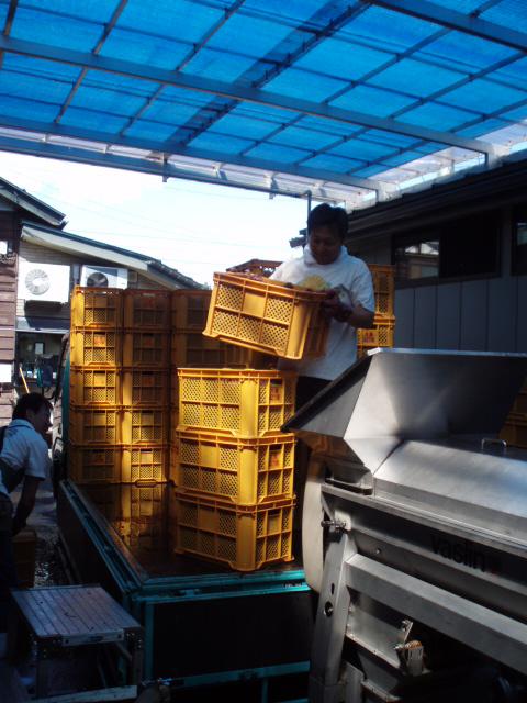 おらいのプレス機は、MAX3トンまでなので、それ以上の量だと、一日のうち2回に分けて仕込みを行ないます。一回搾って、片付けて、また搾って、片付けて、という風に。それでだいたい一日が終わります。
