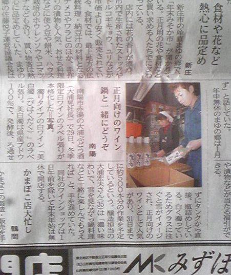 年末年始用のごちそうの特集で、おらいの冬限定にごりワイン『美白濁』の出荷作業を、オラと社員の濱田でしているところを紹介して頂きました。