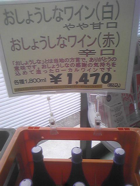同じ“おしょうしな”つながりで、買いに来て頂いて、とてもうれしく思います。その後、奥様のブログ(おしょうしな満腹日記)にも『おしょうしなワイン』を紹介して頂いて、大変感激しました。どうもおしょうしなっしm(__)m