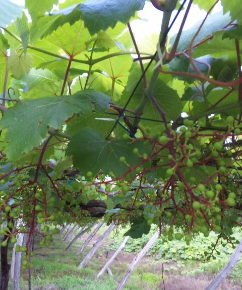 画像は、今現在のマスカット・ベリーA。早いデラウェアーと違い、まだベリーAは幼実の段階だっし。今日、松沢地区の倉庫の近辺ば車で走ってだら、早い農家さんのデラはかなり色乗ってだっけなぁ。まだサクランボのシーズンですが、これが終わるとブドウのシーズンになります。
