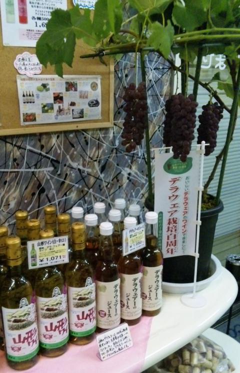 おらいのショップでも、今の時期おいしいデラウェアーで造ったワインとジュースを今月のオススメ品として展示してます。糖度抜群でおいしい赤湯のデラの風味が楽しめます。