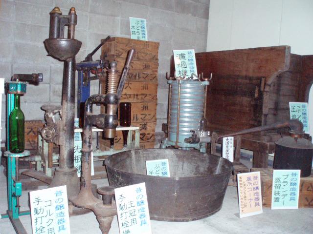 倉庫の奥にあった昔の醸造器具を引っ張り出し、おらいのワインセラー前のスペースに展示しました。創業当時に実際使ったと思われる、歴史が刻み込まれたものです。ぶどう圧搾機、ぶどう破砕用の桶、王冠手動式打栓機、コルク手動式打栓機、ぶどう用木箱、等等。昭和の時代さ戻った気分だっし。