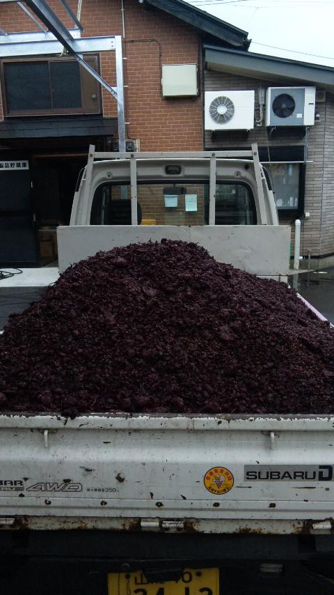 ぶどう農家さんの畑の隅っこさ1シーズン、ぶどうの搾りかすば投げさせてもらってだげんと、来春乾燥してからまたぶどう畑の樹のまわりに堆肥として蒔きます。
