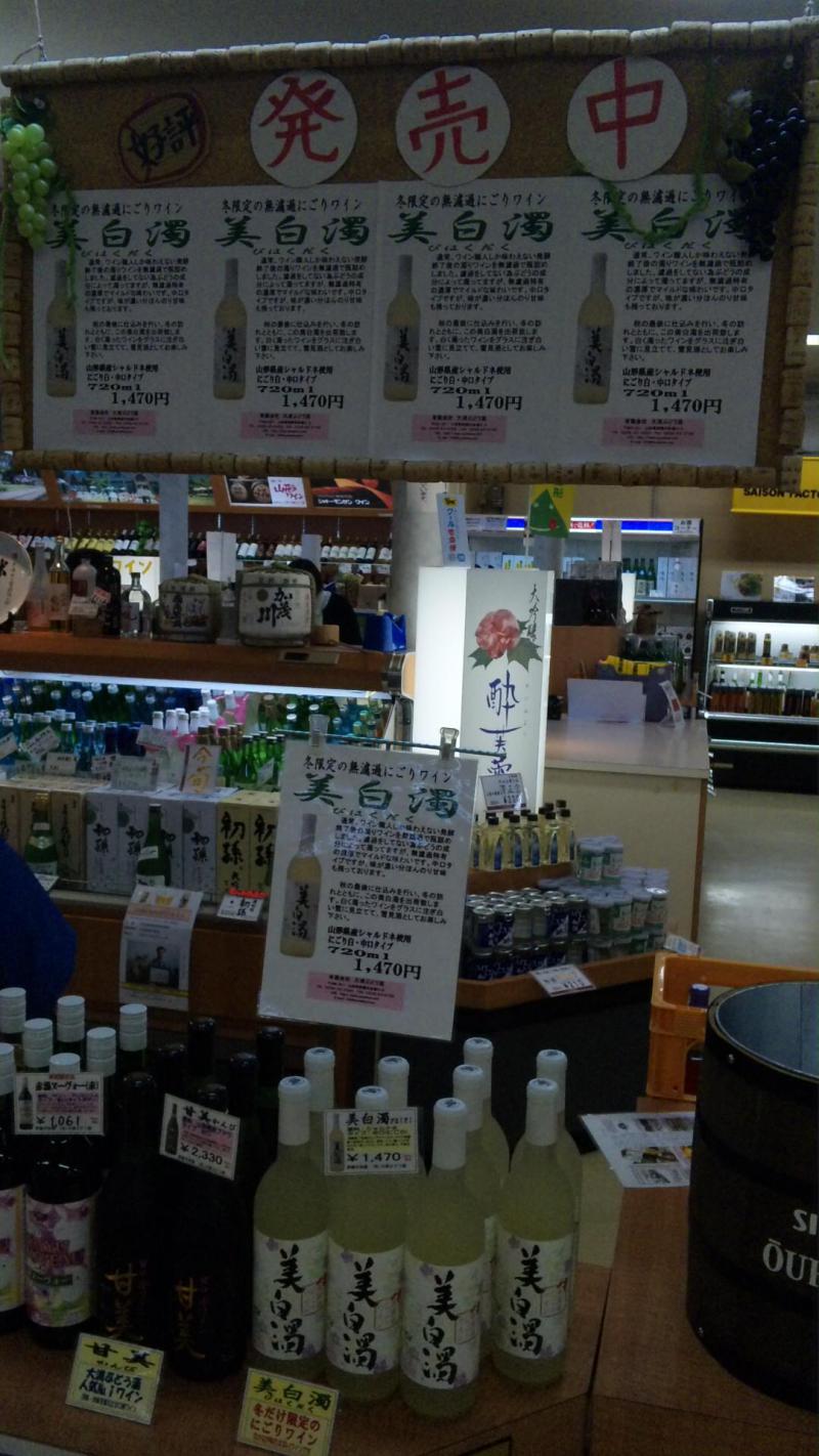 今日から山形県観光物産会館で催事をしています。本当は昨日の夕方に、催事の準備さ出発したんだげんと、この雪で赤湯の鳥上坂は全く車が進まず。待ってもしょうがないので、断念し帰って来て、今朝早くに出直しました。今日は雪も降んねくて土曜日なので車も少なく、順調に山形に着きました。31日(月)まで3日間、物産会館酒コーナーで試飲即売会を行ないます。寒い時には、無濾過にごりワイン『美白濁』を雪見酒にオススメだっし。