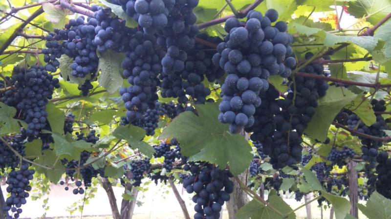 明日仕込む予定の収穫前のベリー・アリカントA。赤ワイン用のぶどう品種では早い時期に収穫が出来ます。赤肉と言うくらい、果肉が真っ赤っ赤。おらいの『赤湯ヌーヴォー(赤)』の原料なので、毎年かなり濃い赤のヌーヴォーを造ってます。アントシアニン、ポリフェノールの含有量が物凄いです。