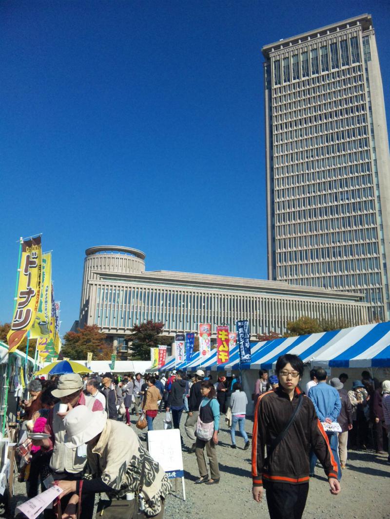 29日(土)、30日(日)と霞城セントラルビル前の山形駅西口広場で行なわれた『仙山交流味祭inやまがた』に出展しました。両日とも天気に恵まれ、来場者も多かったように思います。特に29日は雲一つない晴天で日が差してちょっと暑いくらい。外でのイベントなので、毎年このイベントから防寒用にズボン下を履くんだげんと、今年は履かずにしています。