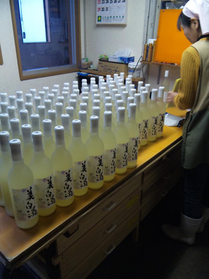 今回(2011年産)のにごりワイン『美白濁』も大変好評です。毎年買って頂いているお客さんには、「ちょっといつもより甘いんでねぇが?」って言われます。実際、催事やおらいさござったお客さんさすすめっと、「甘い」とか「飲み易い」と第一声が多いです。ラベルには中口と表記しているので、もっと甘さを控えて造るつもりが、昨年の美白濁用のぶどう(シャルドネ)が糖度が高く、無濾過ゆえにコクがあるので、ちょっと甘味が例年より出た感じです。