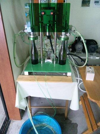 明日は久々にスパークリングワインの充填をする予定。その前に、充填機の中にポンプで水を通して洗浄。入念に水洗いしてます。