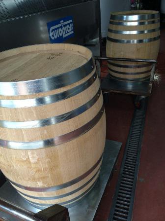 先日購入したフレンチオークの新樽の検定、洗浄が終わり、タンクから樽へワインを移しました。