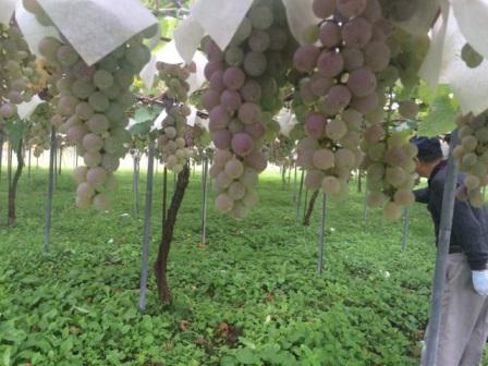 ベリーAを集荷に行って、帰り道に甲州の畑を視察。まだ少し酸味が残りますが、10月下旬頃から収穫、仕込みが始まります。