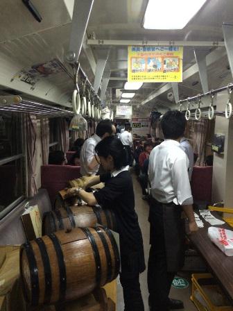 2週続けての列車でのイベント。ちょうど1週間前の金曜日は山形新幹線でのワイントレインがありましたが、本日は山形鉄道フラワー長井線でワイン列車。1両貸し切りで、乗客の方々へワインの振る舞いやワインの説明等をして来ました。