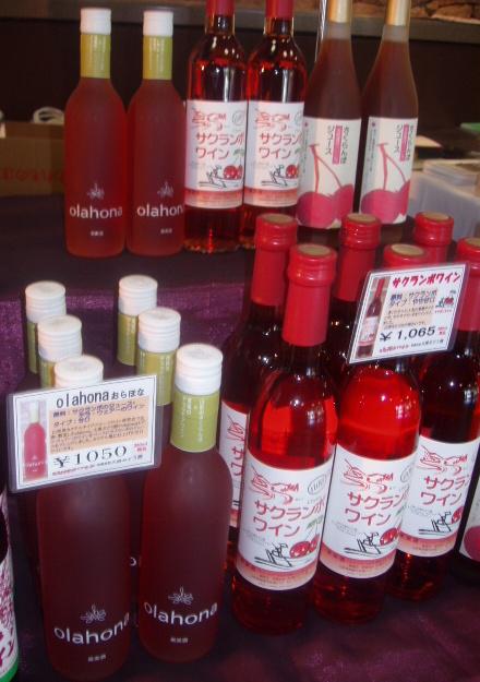 店内の酒コーナーでは、各ワイナリー(7社)の様々なolahonaも揃ってます。りんご、もも、いちご、ラ・フランス、等々。