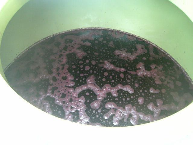 画像は今現在の「赤湯ヌーヴォー2007」になるベリー・アリカントAの赤ワインです。醪で発酵させた後、搾って後発酵してるところ。まだプチプチ言ってますが、発酵終盤なので徐々に静かになってきてます。フレッシュな赤ワインが今年も出来そうです。