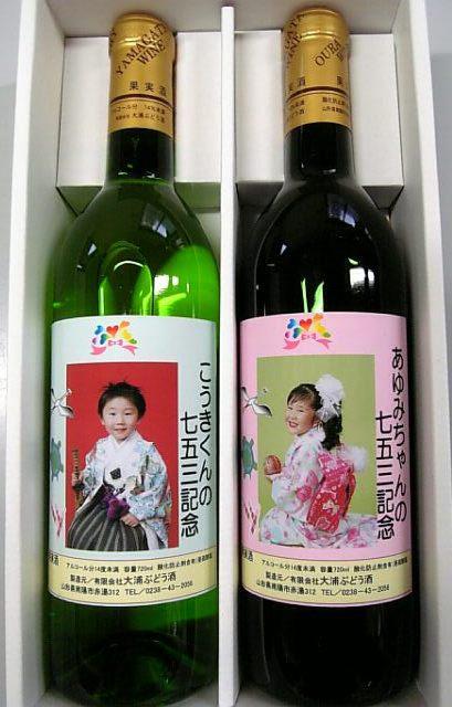 子供さんの写真を入れることが出来て、とても記念になると思います。ワインはご予算に合わせてお好きなものを選んで下さい。