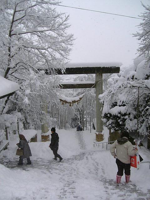 オラは先ほど社長と一緒に、赤湯の烏帽子山八幡神社さ行って、9時のご祈祷に参加してきました。画像は継ぎ目無しの石では日本一の大鳥居。赤湯も今年は大雪のお正月さなってしまったなぁ。