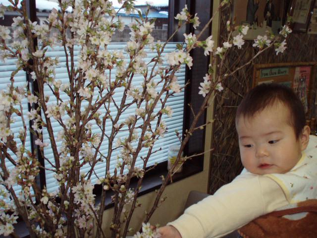 おらいのワインショップに飾ってある親戚に頂いた啓翁桜がほぼ満開です。