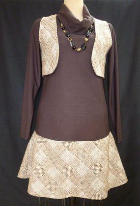 べージュのロングスカートをほどいてベストとスカートの部分に利用しました。