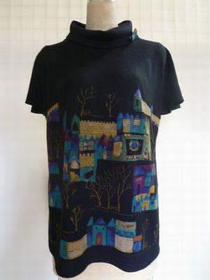 ニット素材のチュニックでプリント、色使いがなんともステキです。
