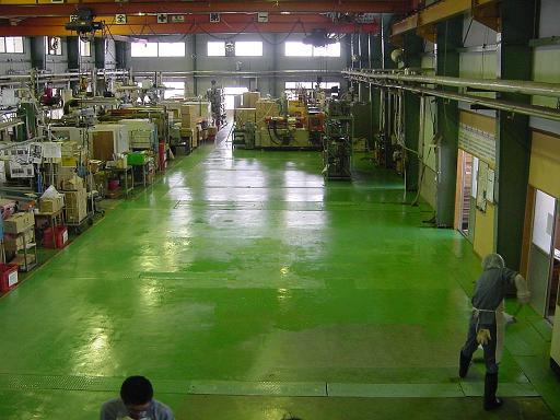 5月3日はお休みでしたが、作業者の方々の協力を得て工場内の床にペンキをぬりました。(金型工場、成形工場共に)