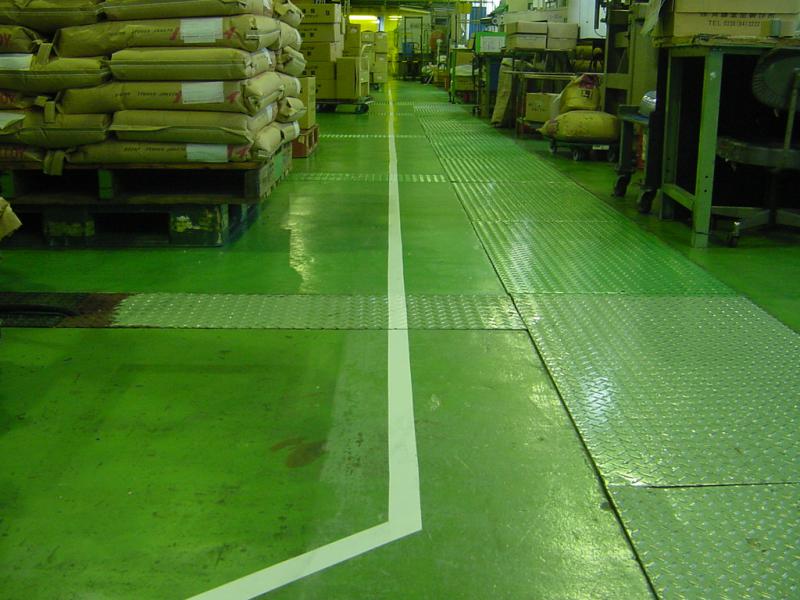 ▼工場内に白線を引きました。