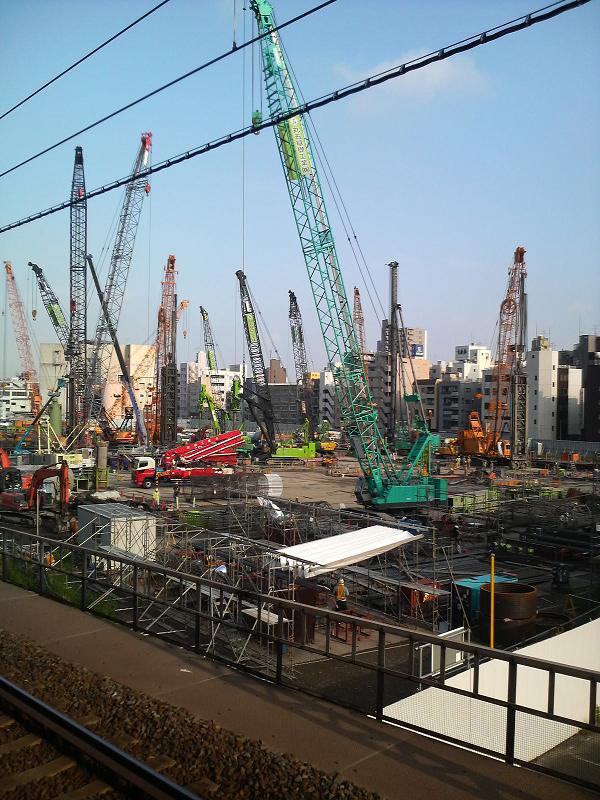 表面に見える部分ではそんなに進んでいるようには見えないのですが、クレーンが沢山稼働していました。