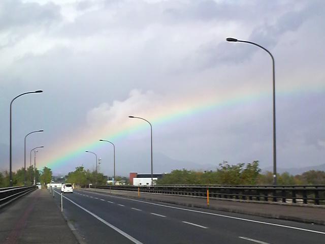 会社に戻ろうと「あかしや橋」(置賜野川に架かる橋です)を通過しようとしたらとても大きな虹が見えました。