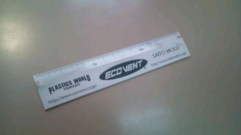 その「スケール」ですが、弊社で金型を作って成形、かつ印刷まで社内で行った製品です。目盛も印刷ですから、それなりです。