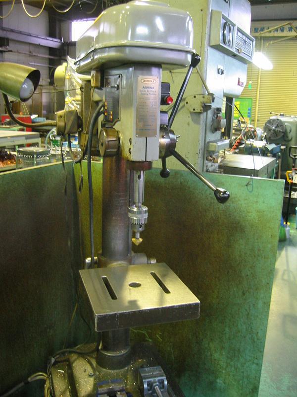 「穴あけ」のほかにボール盤では「タップ(ネジきり)」「面取り(穴の口元を45度におとす)」や「磨き(ピンなどを回転させて紙やすりでみがく)」などが出来るかなり便利な機械です。