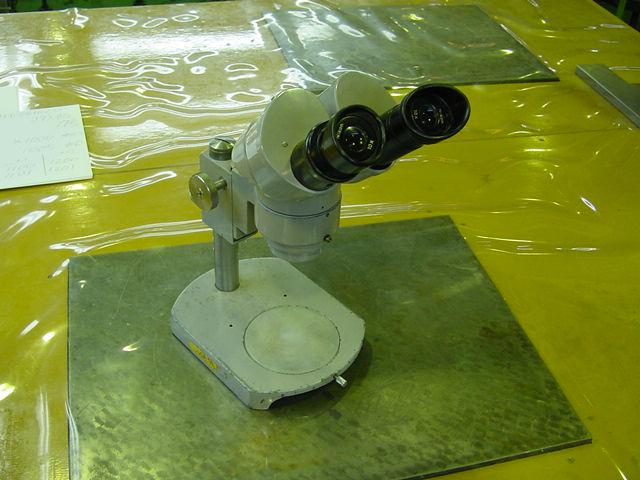 これは二つの目で見る事が出来るので「実体」のつく顕微鏡になっています。