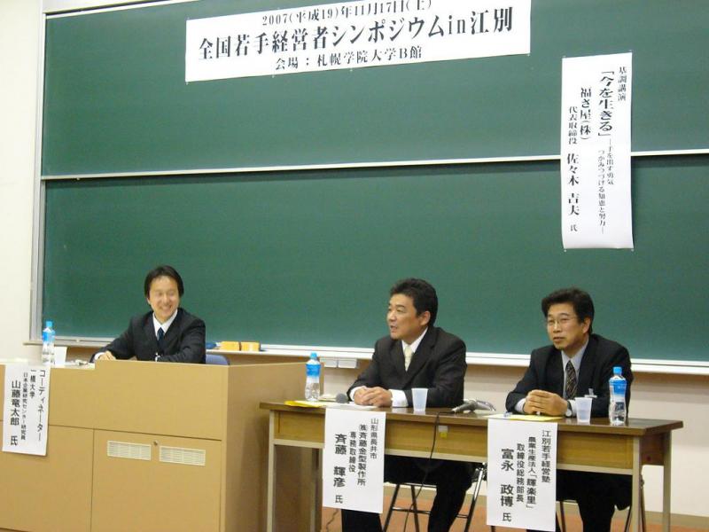 特に本シンポジウム開催に当り、体当たりで全国を飛び回り成功に導かれた、江別市役所 経済部商工振興課「寺島 満喜子さん」には敬意を表します。