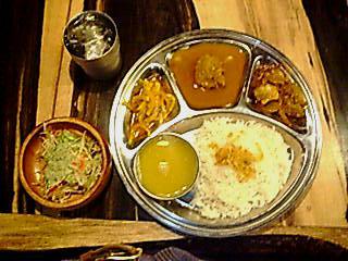 ネパール家庭料理の店『ネワブトゥ』は行きつけの店なんですが、日曜祭日が休みの為、私はランチセットを食べた事がありませんでした。今日は念願叶って初ランチでした。とりあえず辛い方のセットにしてみました。ククラカリにチョエラ、あと漬け物(名前は忘れた)、ライス(長粒種)、サラダ、ダルスープでした。
