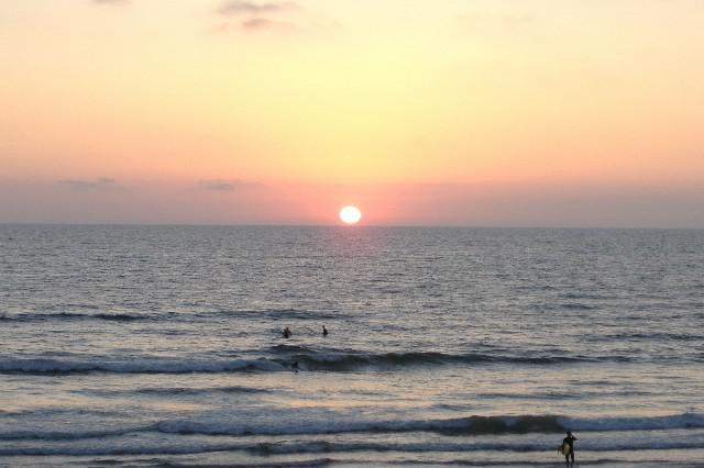 その後、Cardiffで夕日をバックにサイズはあるがメローな波をマッタリと。人居ません。独占状態でラリラリラ〜〜。