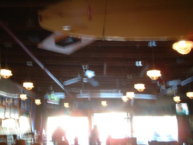 サーフボード購入後、せっかくCardiffに来たということで、地元で有名なピザ屋へ。この店は古き良きサーフシティーが並ぶハイウェイ101号沿いにあり、サーフィンカラー一色。このピザ屋も天井には無数のサーフボードが飾られていてカッチョイー!ピザも上手いけど、みんなのお目当ては生ビール。ハウスメイドで樽が丸見え。種類も20種類以上!そして、大酒呑み二人…