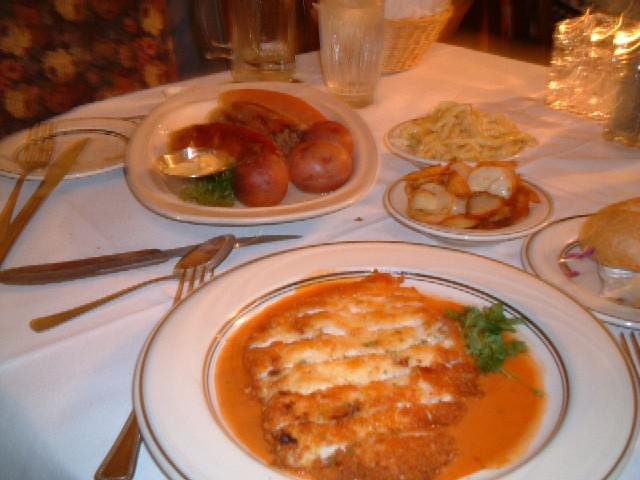 頼んだのはドイツ風チキンカツのパプリカソースと自家製ソーセージ。当然ドイツビールも。味は結構こってり系でサイドディッシュはポテト尽くし。「激ウマ」とまでは行かないが「中ウマ」といった感じかな。でもビールは最高!ドイツのミュンヘンで泥酔したときのことを思い出した。