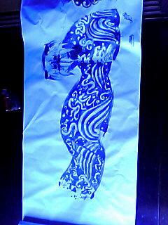 幅90cmのでっかい障子紙に描いてます。狭いアトリエで描けないので獅子宿の廊下にやってきました。左側に警護を描きました。どうなったかな?