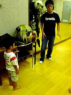 先日獅子舞ごっこがこうじて獅子頭を新調してもらったAくん。パパと一緒に太鼓の稽古に参加しました。でも恥ずかしくなっちゃって太鼓を前にして、しくしく涙ぐんでしまいました。お獅子もおっかないしー。がんばれーチビッコ太鼓名人よ!試練を乗り越えるのだ! 結局ずーっと叩かずじまい。なんと!見かねたパパが30分でダダンコをマスターしてしまいました。さすが名人のパパですね。