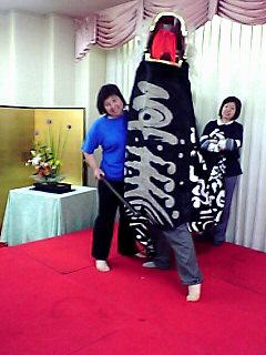 明後日の本番に向けて休日返上の特訓です。警固がかりを3パターンご披露しますが、これは飯豊のお諏訪様系相撲型のスタイルで略して『相撲型』と読んでます。背のたかいお菓子作りの得意なMさんが担当です。