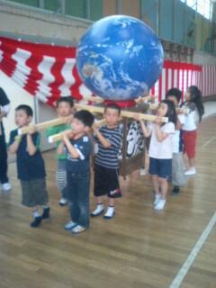 こちらは慈愛みこしの稽古風景…ですが、みこし体験は初めてな児童ばかり。掛け声なんて直ぐに忘れます。まだまだ経験と集中力を養わないと…。