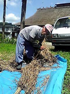 近所の方に茅切りをお願いしました。その方の家も以前はかや屋根で、すごく手慣れておられました。昨年刈った茅で何とか今回の修理に間に合うだけの量があるか心配です。もうすぐ秋が進み、北風にさらされてすっかり茅が枯れて黄金色になったら茅刈りが始まります。そうだ!皆さん!茅刈りのボランティアをしてみませんか。一度、茅刈りを体験してみませんか?申し込みはメールで投稿してくださいね!