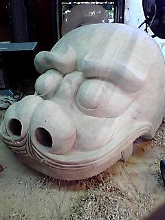 冬に荒彫りして、しばらく乾燥を待っていた木地の獅子です。柳材は生木だと豆腐の様にサクサク彫れますが、こう乾燥してしまうと堅く粘りが出て彫りにくくなります。