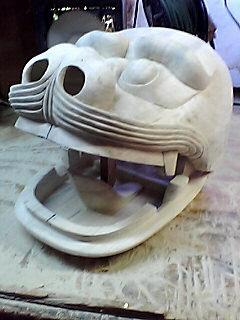 なかなか軽くならないお獅子。顎も彫り進めています。思ったように軽くなりません。お獅子も人間工学に準じた重さでないといけません。