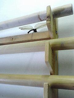 昨日カメバチの巣を二つ、アシナガバチの巣を二つ駆除しました。カメバチに数年前腰を刺され念のため病院にいったら点滴をされました。近くの人が以前アシナガバチに刺され亡くなっている話も聞いています。今度刺されたらアレルギー反応起こしてショック死するかもよ!なんて誰かに脅かされたりします。その点オニヤンマは刺さないし、害虫を食べる益虫だからハエ叩きで追っかけまわしたりしません。カメバチなんか侵入したら最後人格が変わったように叩き落しリンチします。同じ昆虫なのにかわいそうな気がします。なんと!昨日、叩き壊したはずのカメバチの巣は着々と修復作業が進み元の巣に蘇ろうとしているではありませんか!茅葺父ちゃんがやってきて「だめだごでー!カメバチの巣ば、全部落とさないとすぐ元さ戻っごでー」といって残っていた巣を棒でバンバン落としてしまいました。