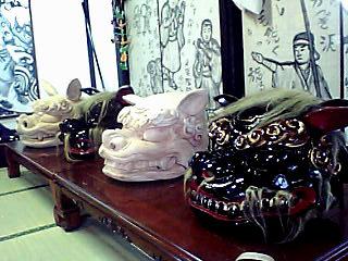 古いお獅子と新しい木地の獅子を並べてみました。寸分通りとはいきませんが、すばらしい古い獅子の表情を写し取ることができそうです。古いといってもまだまだ現役の獅子です。今年も地区の厄を払い、人々に多くの恵みをもたらす事でしょう。いってらっしゃい!