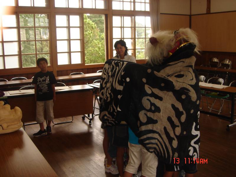 長井の宝物を探してみようという企画でお呼ばれしました。色んな質問が飛び交い一時間はあっという間でした。最後にみんなでお獅子の幕の中に入って大喜びでしたが、一人だけ男の子が幕に入るのを拒否して、側で見守っていました。将来、意外とこういうタイプの子が獅子舞にとりつかれるのです。楽しみ!来年獅子舞クラブに入会するそうです。