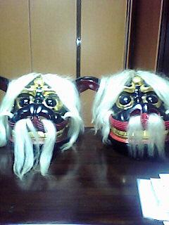 今年初めて獅子舞にデビューした獅子が里帰りしました。付き添いの姉の獅子も一緒です。漆の唇の色を化粧直しします。漆の赤は完全に発色し始めるのに数年かかるということなのですが、せっかちな世の中なのですね数年も待てないというのです。姉の獅子はカシュー塗料で塗られなんとも鮮やかな今風の色です。両者中間の明るさが無難でしょうか。