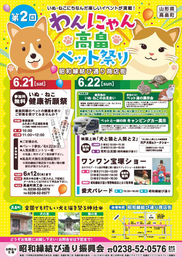 平成26年6月21日(土)、22日(日)の両日、第2回わんにゃん高畠ペット祭りが開催されます。