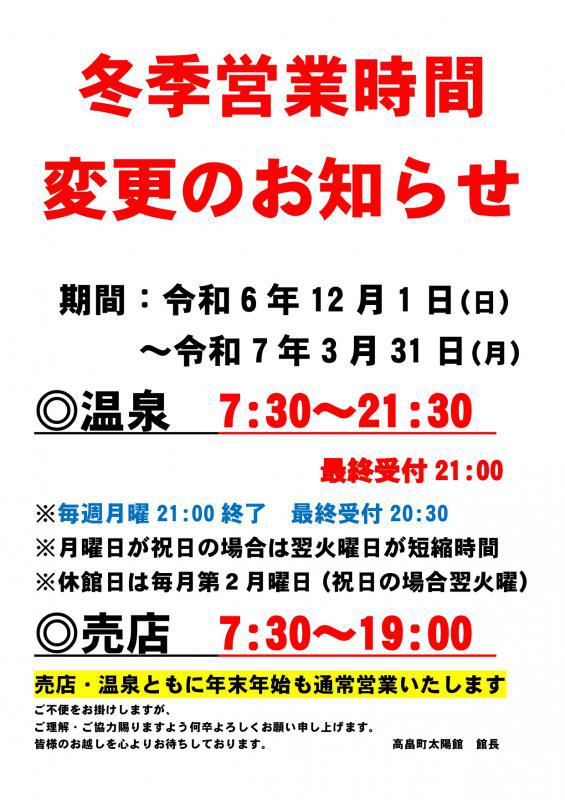 入浴時間:7時30分〜21時30分(最終受付 21時00分)