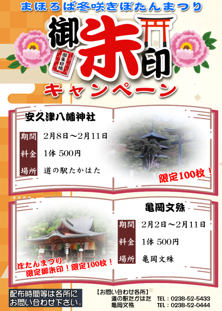 ※安久津八幡神社、亀岡文殊ともそれぞれ限定100枚の配布となります